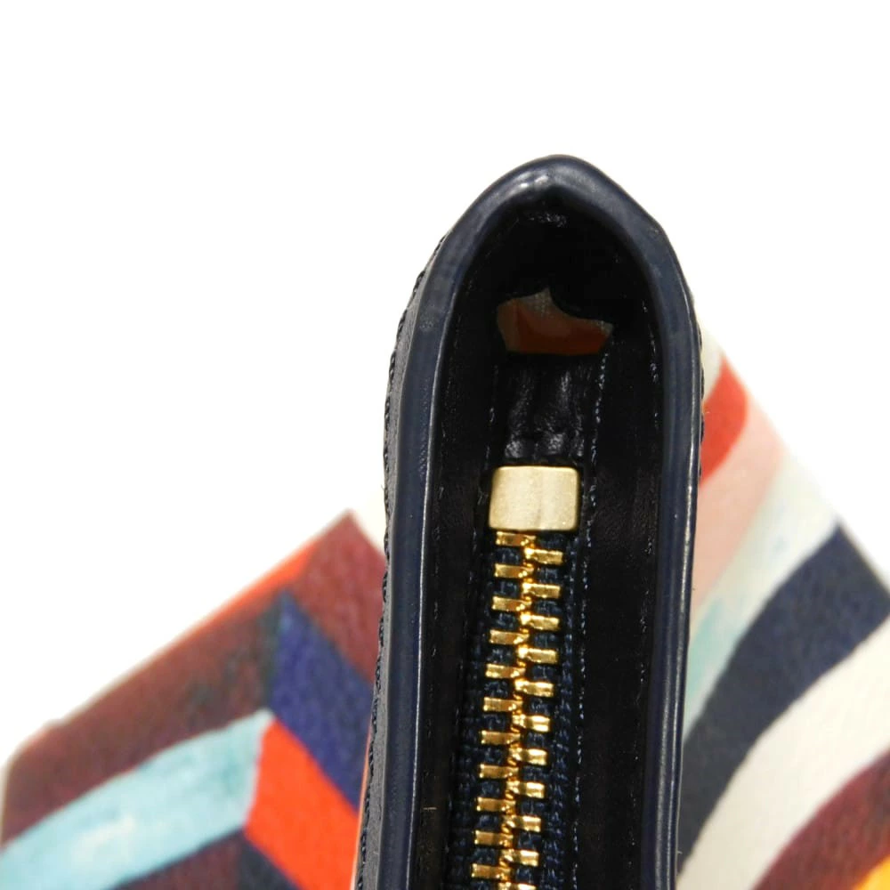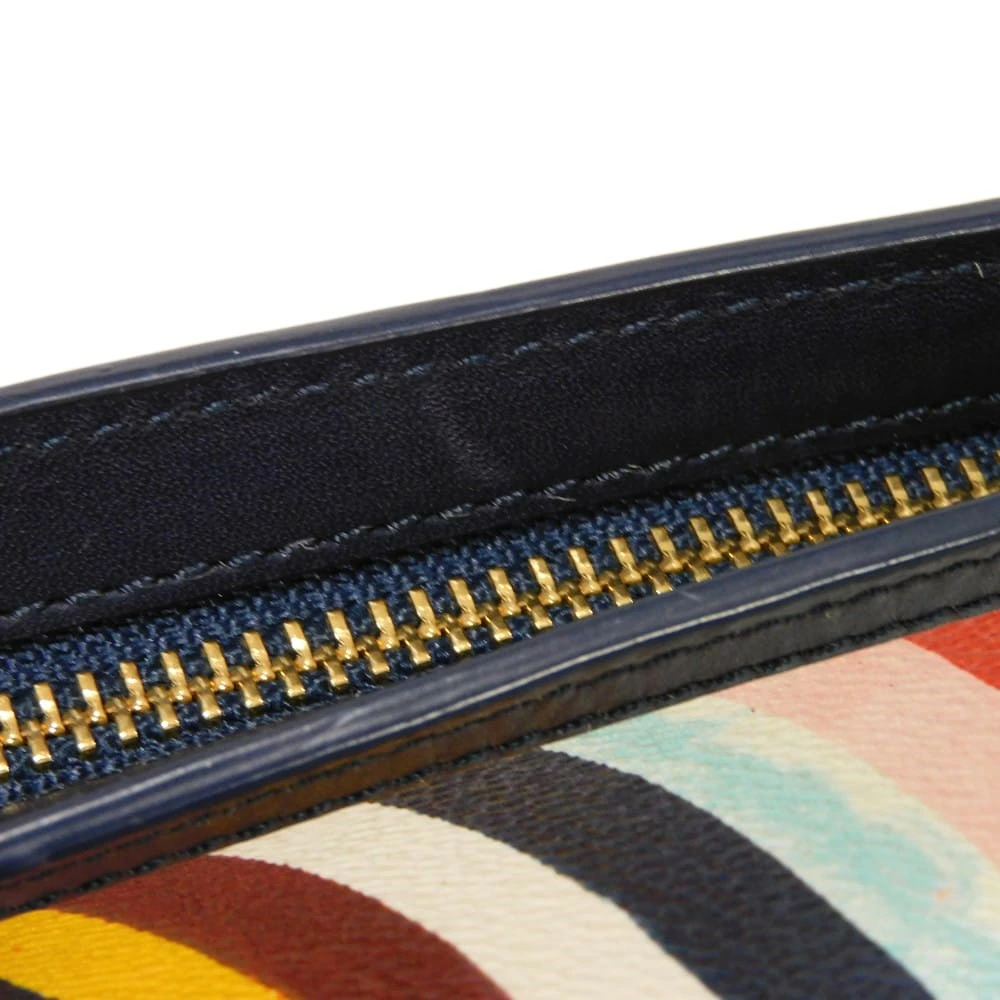Pre-owned Tory Burch Kerrington Diamond Combo Pouch with Stripes, Double T Logo, Metal, and PVC in Multicolor. Elegant, high-quality, sophisticated, and sophisticated. Perfect for men and women.