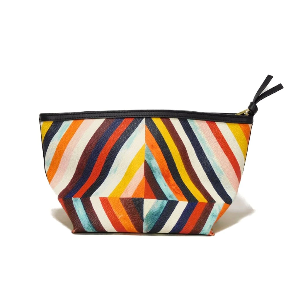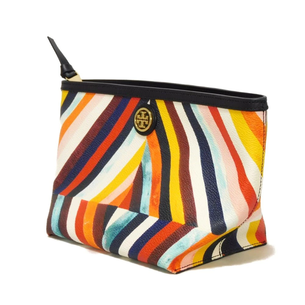 カラフルなカラーのストライプモチーフにトリーバーチのダブルTロゴメタルをあしらった「ケリントン ダイヤモンドコンボ ポーチ」クラッチバッグです。