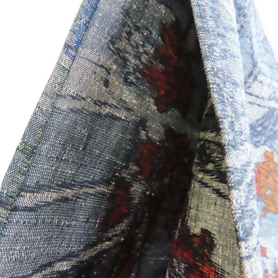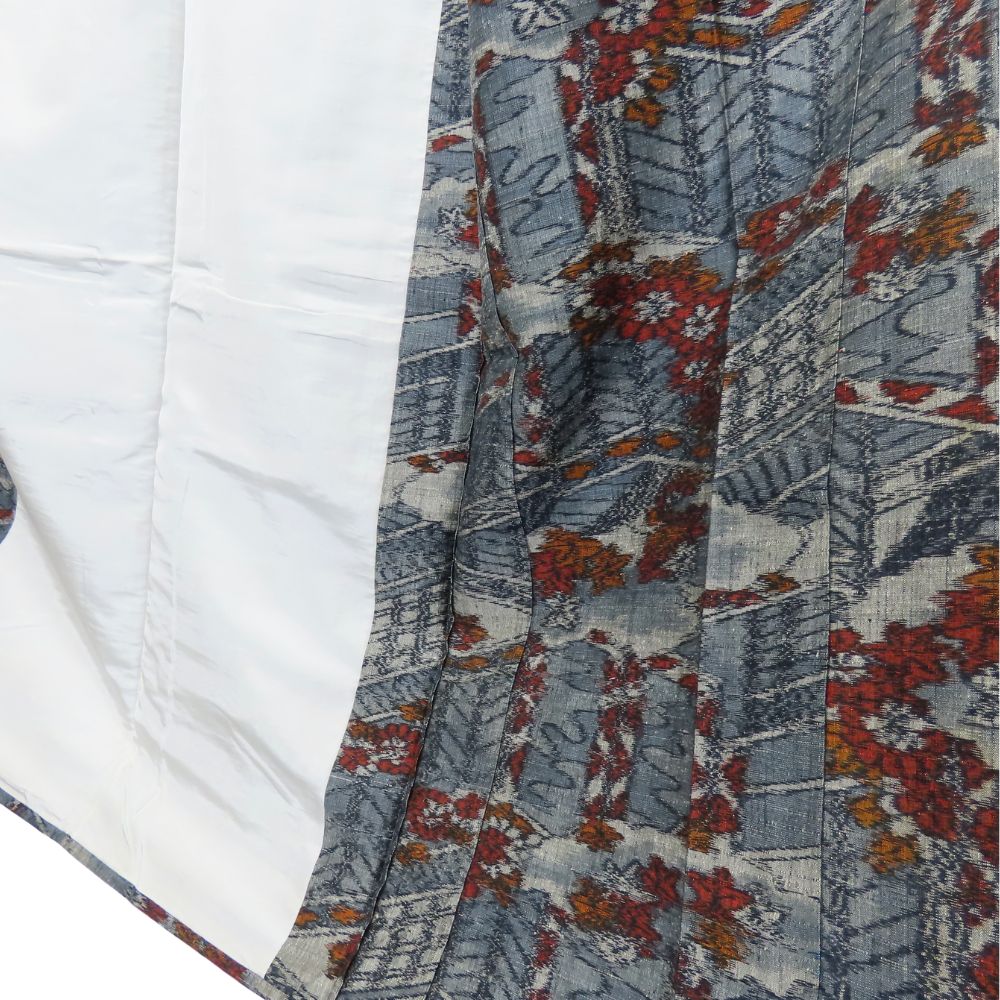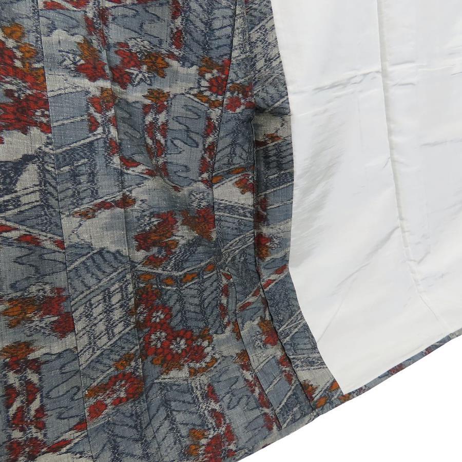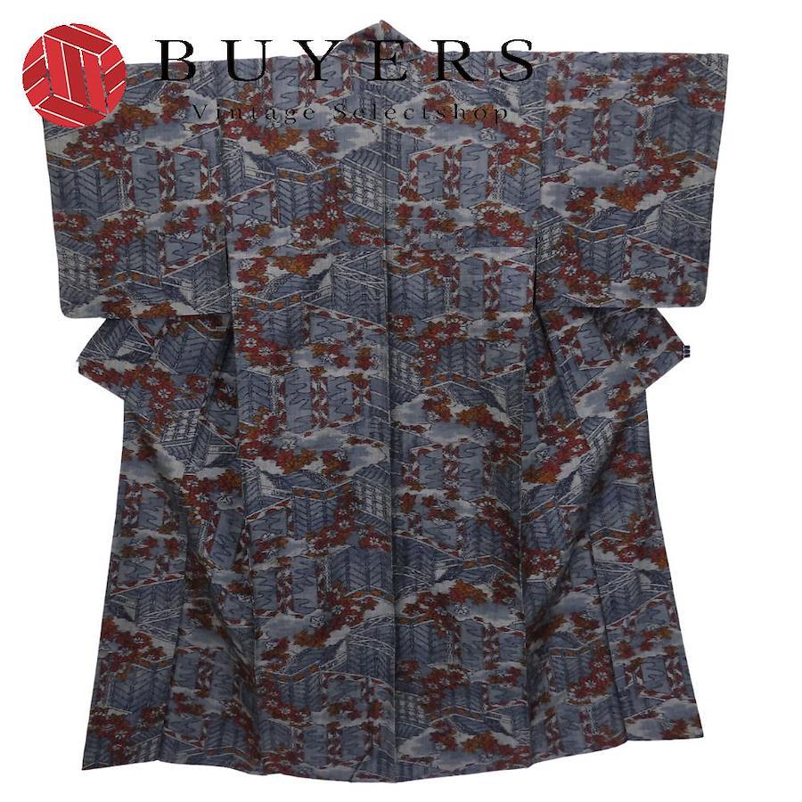 | 品名 | 【中古】 紬 正絹 ブルーグレー オレンジ レッド 単衣 竜田川模様 レディース 女性 |