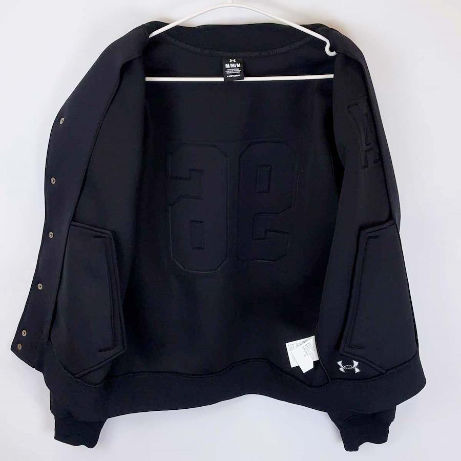 [タイプ] UAバーシティ ジャケット[表記サイズ] M[対象] メンズ[型番] 6007425[カラー] ブラック[身幅] 約55cm[着丈] 約61cm[袖丈] 約65cm[肩幅] 約50cm[状態] 紙のタグはありませんが、未使用です。