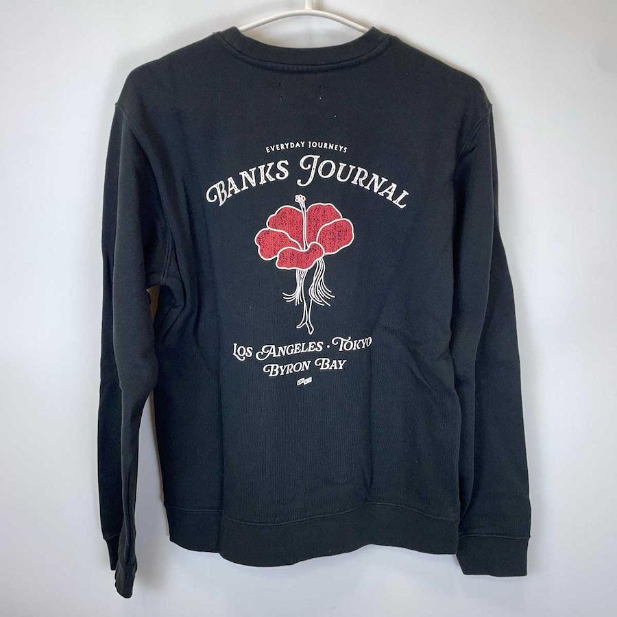 [ブランド] BANKS バンクス[タイプ] WILOW FLEECE トレーナー ロゴ プリント[表記サイズ] S[対象] メンズ[型番] AFL0238[カラー] ブラック[身幅] 約52cm[着丈] 約60cm[袖丈] 約60cm[肩幅] 約44cm[状態] 未使用品