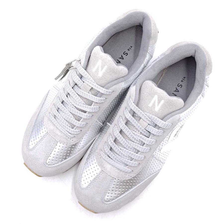 [ブランド] SANGACIO サンガッチョ[タイプ] Wako's room イニシャルスニーカー にゅーず レザー[表記サイズ] 24.5cm[対象] レディース[型番] W-SGC-2302-N[カラー] シルバー[状態] 未使用品