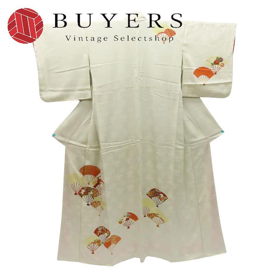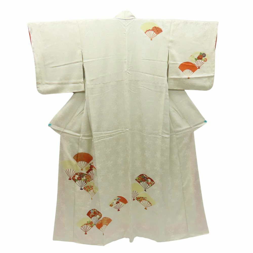 | 品名 | 【中古】 訪問着・付下 正絹(金銀糸除く) ホワイト マルチカラー 扇柄 上品 華やか レディース 女性 |