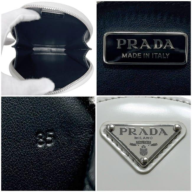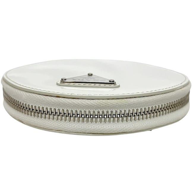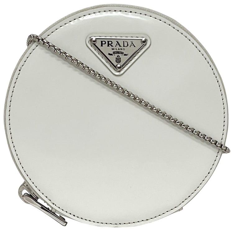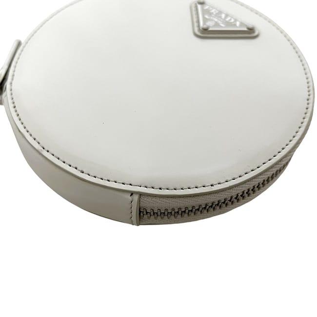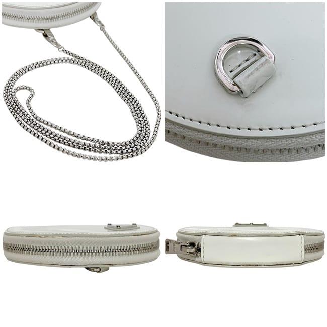 ☆---- 商品について ----☆プラダ ショルダーバッグ f-24679 ホワイト 1NA003 美品 ラウンド チェーン バッグ レザー 中古 85 PRADA ラウンド 白 丸 ミニ ポシェット ファスナー 三角 ロゴ プレート ファスナー ミニバッグ レディース 女性 定番 人気 斜め掛け ブランド 本物 鑑定済み