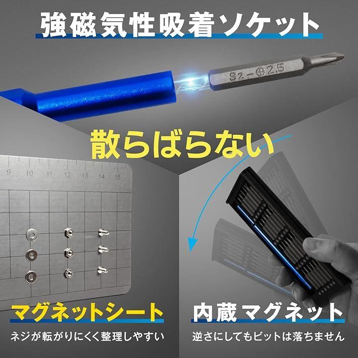 「3種類のマグネット」精密ドライバーのビットソケット・マグネットシート・ケースの内蔵マグネットと3つの磁力で作業効率を格段に向上させます。