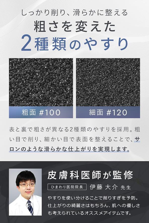 【PREMIUM BLACK(プレミアムブラック)タイプが新登場!】頑固な角質もより削れるストローーングブラック●ギフトにも使えるパッケージ。つるつる簡単サロンクオリティーのかかと角質取り●清潔感のある踵に仕上がります●軽石代わりに●サロンに行く手間も施術代も無し●ご自宅で簡単にツルツルのカカトに生まれ変われます●誰でも簡単に取り扱うことができる製品です※つるつるとは足の裏のかくしつを除去するケアすることで得られる効果です。 【スタイリッシュなオールソーブラック】●30日間返品交換補償付●日本検査機関にて5000回使用時の耐久性の検証済み●拘りの耐水ヤスリは安心のホルムアルデヒドの検査をクリアしています。お子様のいる家庭でも気兼ねなくお使い&保管していただけます●工場提携で高品質低価格を実現 【使い易い形状と重み設計、手に馴染む形状】●軽すぎて持ちにくかった従来品改良。重量感をもたせたことでしっくりと手になじみます。●力を入れずに角質を除去が出来、表の粗面は力が入り易く踵の広範囲が削れるフラット設計・裏面の細面は細かなところや丸みがある部分にも柔らかく磨けるカーブ設計。 【かかとの悩みを一掃解決】●ガサガサカチコチ踵もつるつるに●角質が溜まる事でニオイや不衛生の原因に●一部の角質が分厚くなることによる痛み解消●後ろ姿のガサガサかかとに●等々踵の不安に先回り、足元から清潔に美しく●ご使用後は保湿クリームを塗るとより効果的です。 【商品詳細・本体サイズ】21.5cm×5cm×1.5cm 重量77g パケージ仕様は予告なく変更となる可能性があります。より良い製品がご提供できるように努めています。現在ツヤコート仕様のパッケージです。プチギフトや保管にも最適。 【定期オトク便の解約・変更方法】 意図せずに定期購入にて購入してしまった&解約したい方へのご案内です。 定期オトク便は1回だけ利用し、その後すぐの解除が可能です。 販売者側からの変更が出来かねますのでお客様ご自身にて修正いただく必要があります、方法については以下の通りになります。 ー1.画面下部の人型アイコンをタップしアカウントサービスを選択 ー2.「定期おトク便情報を管理する」を選択 ー3.「定期便商品」から定期おトク便を解除したい商品の詳細設定を開く ー4.「定期おトク便を停止する」から「登録をキャンセルする」を選ぶ お手続きは完了です。 注意: 出荷準備が始まっている注文はキャンセルができません。ご利用中の定期おトク便における次回以降の配送分がキャンセル対象となります。なお、キャンセルできなかった場合は状況に応じて返品、配送停止などを依頼してください。
