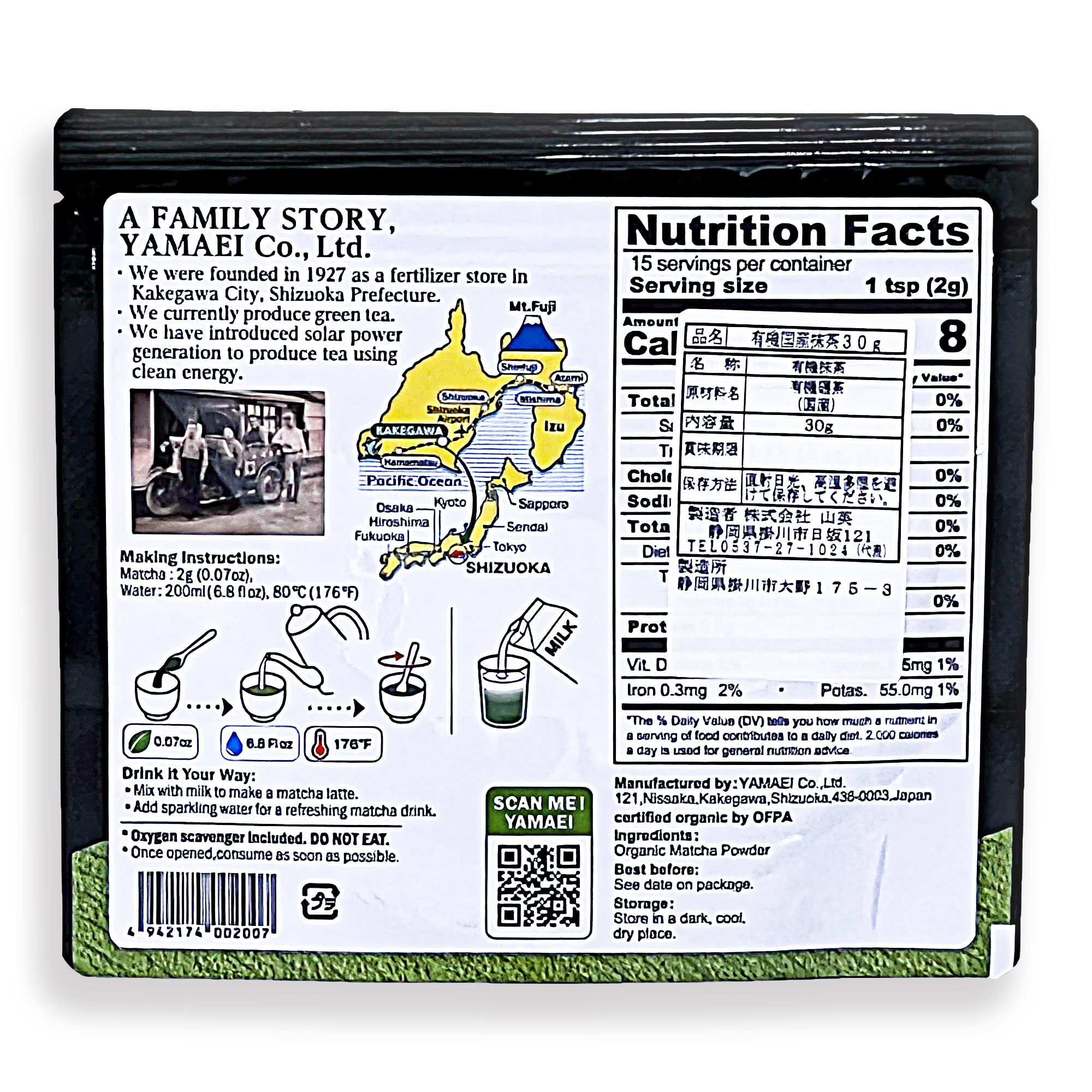 ・有機JAS認証の国産碾茶100%使用、安心・安全の抹茶パウダー・上品でまろやかな旨味と適度な渋みが特徴の国産抹茶・日本の茶葉わずか4%のオーガニック茶葉のみ厳選使用・お茶の栄養成分をまるごと摂取できる便利な粉末タイプ・ミニHACCP承認工場で製造、品質管理も徹底・溶けやすく使いやすい粉末なので、お菓子作りにも最適・抹茶ラテやスイーツ作りなど、アレンジレシピも豊富・鮮やかな緑色と香り高い風味で、本格的なお茶時間を演出・冷暗所保存で鮮度長持ち、ジッパー付きで保存にも便利 ・30gの使いきりサイズで、いつでも新鮮な抹茶を楽しめます国内、国外で共通の商品として販売されているものなので、輸出用途にも対応した英語パッケージ(本ページのサムネイル1、2枚目の画像)での流通となる場合がございます 原料は日本国産の有機栽培抹茶です【免責事項】メーカーによる商品リニューアルに伴いパッケージ(内容量も含む)変更が行われた場合、新パッケージでお届け致します事ご了承願います。