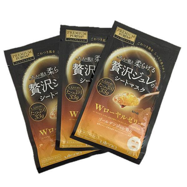 大人の肌のうるおいバランスに着目して、コク深いジュレ状美容液を採用。しっとりとしたお肌にととのえて、うるおい広がる魅力肌に。●ゴールデンジュレ処方シートに含まれたたっぷりジュレがお肌を柔らげて、角質層までうるおい届ける。●うるおいブーストチャージ:セラミド、スクワラン、8種のアミノ酸。●浸透&保湿:エイジングケア Wロイヤルゼリー+トレハロース。●吸いつくような密着感。柔らかな肌あたりでピタッと密着。顔の凹凸を考えた、独自の切り込みの密着シートを採用。●ナチュラルハーブのほのかな香り(精油使用)。