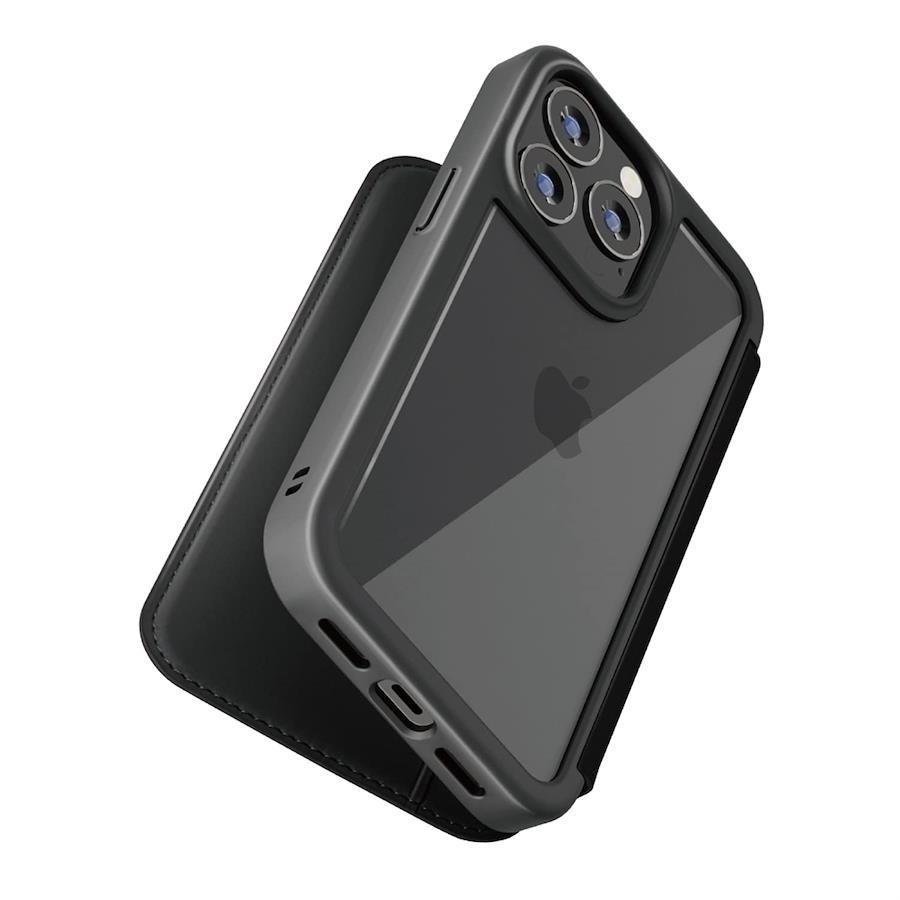 「PG-21PGF01BK」は、オリジナリティと機能性を追求したiPhone 13 Pro Max用 ガラスフリップケースです。MIL規格(MIL-STD-810G)の2項目、落下・振動に準拠した試験をクリアしたタフ設計。ケースの内面にはマグネットロック機能搭載でラクラクカバーを開閉することが可能。背面はクリアガラス仕様なのでシールや写真を入れて自分好みにカスタマイズすることが出来ます。通勤通学やお買い物に便利なカードポケット・お手持ちのストラップをつけて落下を防げるストラップホール付き。特許取得済みです。