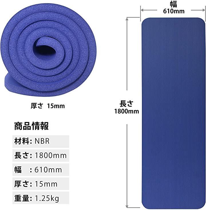 ・「製品情報」素材:NBR、サイズ:180cmx61cmx15mm、重量:1.25 kg。