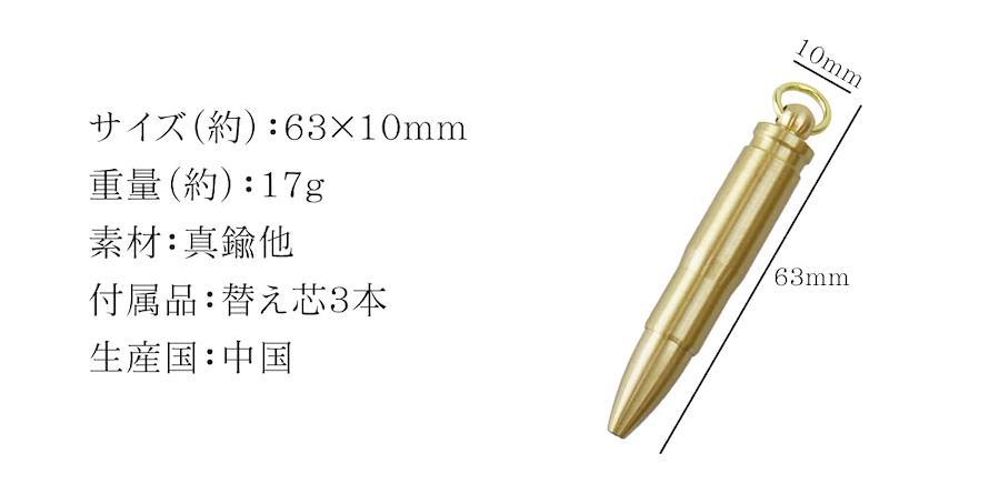 サイズ(約):63×10mm重量(約):17g素材:真鍮他付属品:替え芯3本生産国:中国