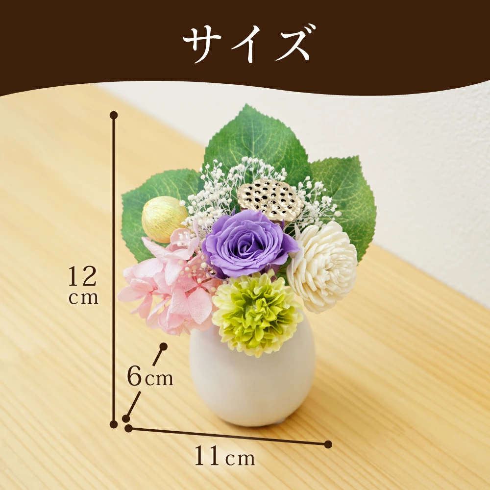 ●プリザーブドフラワーでいつも華やかに●すぐ枯れる仏花もプリザーブドフラワーなら枯れる心配がいらない●小さめのサイズなので置きやすい