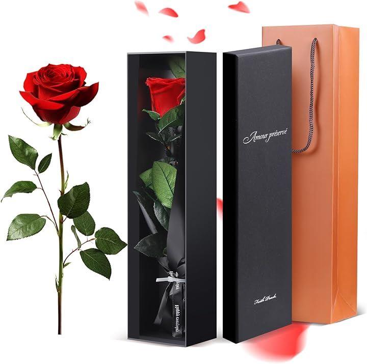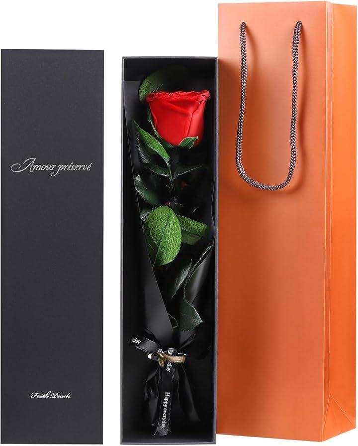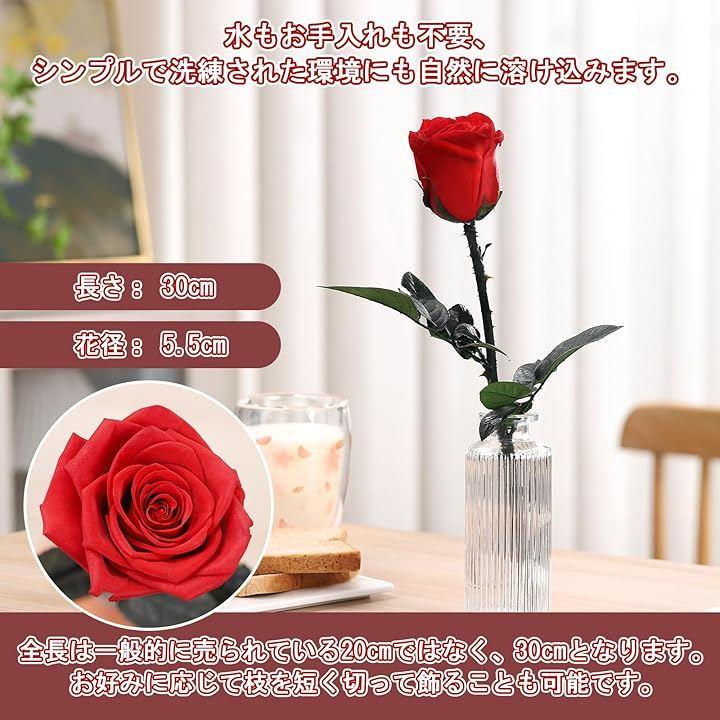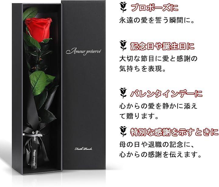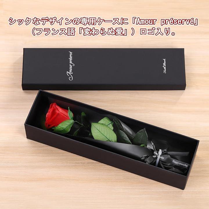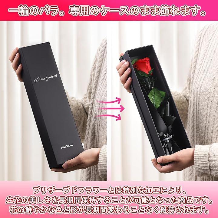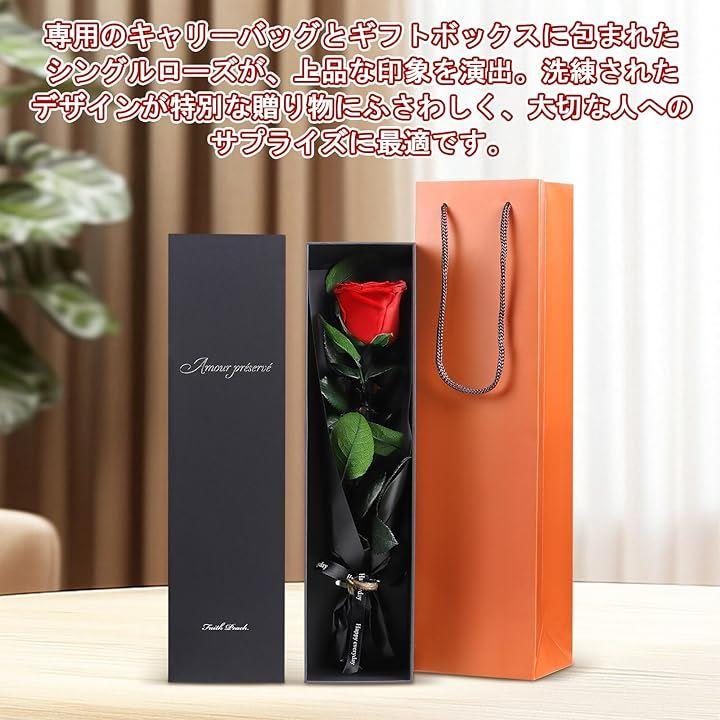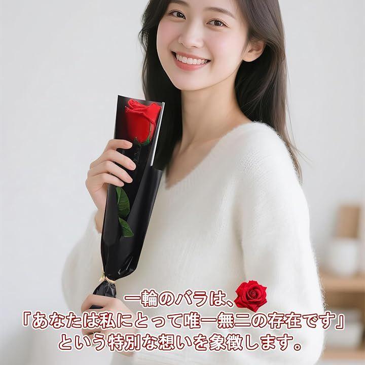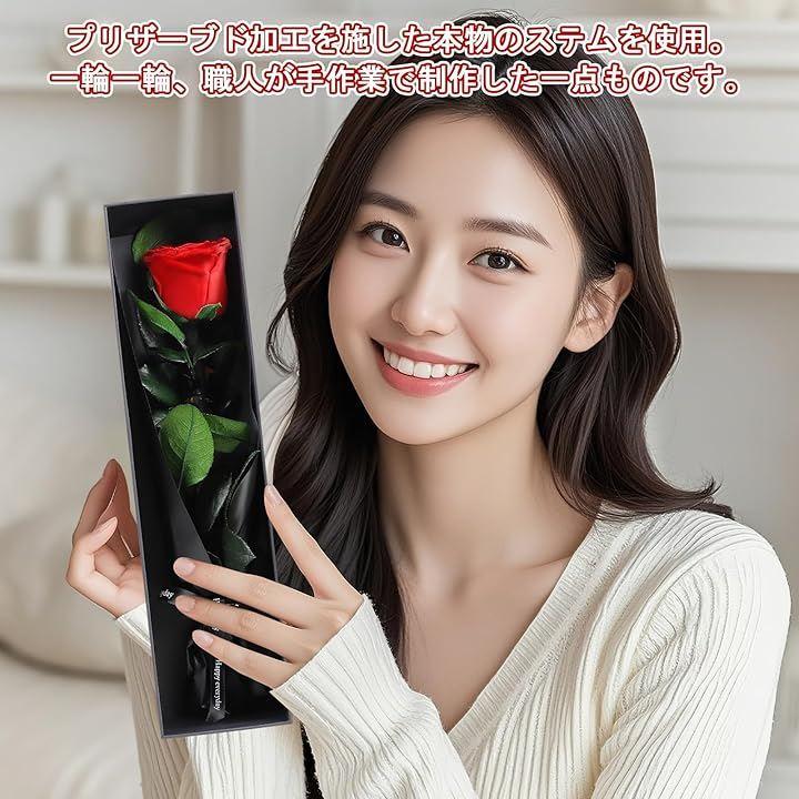 「幅広いシーンで心に残るプレゼント」 シンプルかつ上品な一輪のバラは、どんなインテリアや好みにも馴染みやすいのが特徴です。