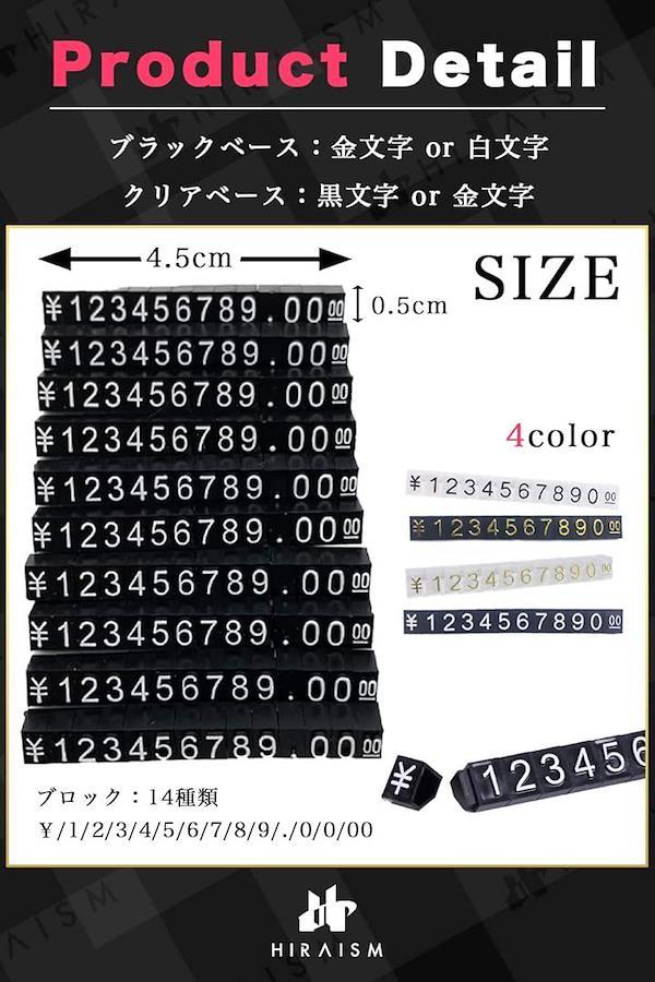 「商品内容」カラー:白文字/ブラック ブロック:14種類(¥/1/2/3/4/5/6/7/8/9/./0/0/00) サイズ:4.5x0.5cm(単体:0.3x0.5cm)