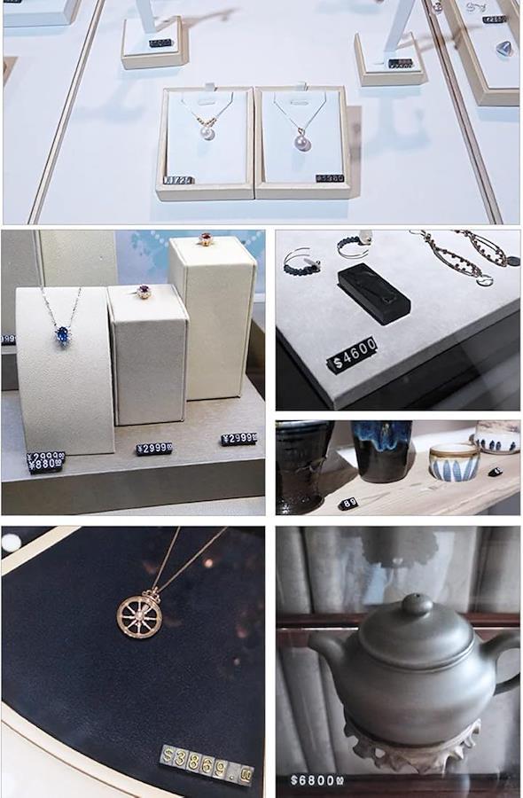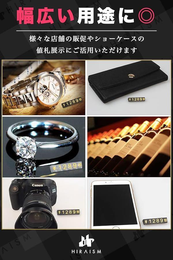 「様々な用途に」その場で金額を変更できる手軽さと高額の価格表示も可能なため、パン屋や雑貨屋、フリマサイトの撮影用、高級宝石店など、様々な店舗の販促やショーケースの値札展示にご活用いただいております。