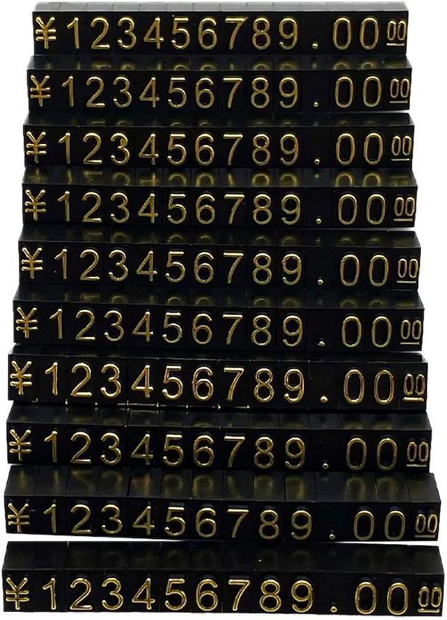 「商品内容」カラー:金文字/ブラック ブロック:14種類(¥/1/2/3/4/5/6/7/8/9/./0/0/00) サイズ:4.5x0.5cm(単体:0.3x0.5cm)