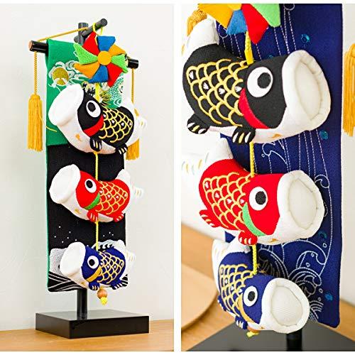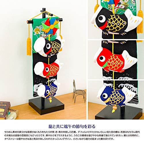 サイズ:横幅17cm×奥行12cm×高さ45cm ちりめん素材でつるし飾りタイプの室内用鯉のぼり サイズとデザインのレパートリーは5種類 省スペースに飾れるコンパクトサイズ 五月人形や兜飾りと一緒に飾ればお節句祝が豪華に