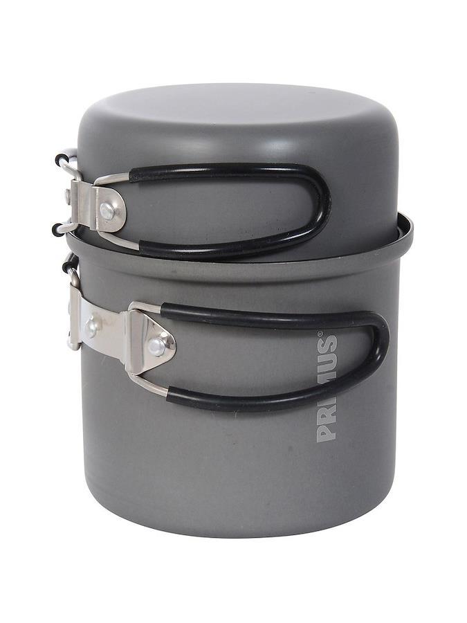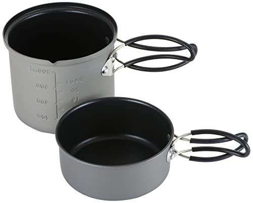 セット内容:ポット(900ml、内径12.5×10cm)、ミニポット(400ml、内径12.0×5cm)重量:250g収納サイズ:12.5cm×12.5cm×15cm素材:アルミ製(ハードアノダイズド加工)内側:ノンスティック(フッ素コーティング)加工済付属品:収納袋
