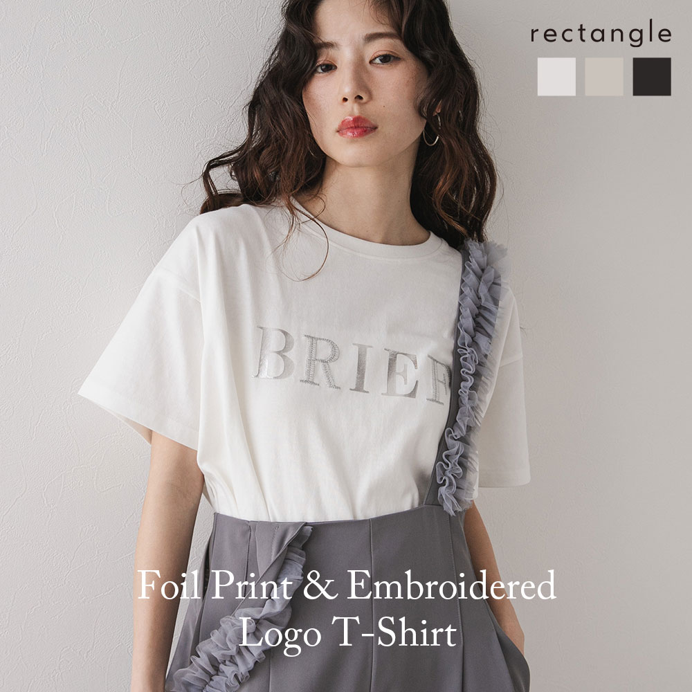 シンプルながら存在感のあるロゴは、箔プリントと刺繍の異素材ミックスで仕上げ、洗練された雰囲気に。