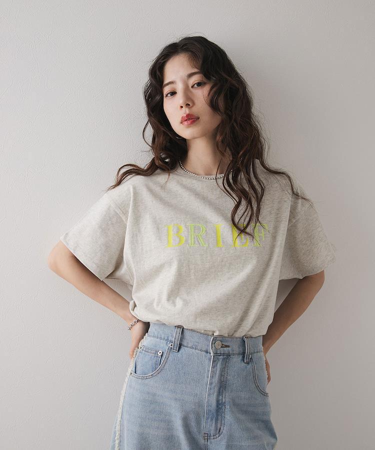 シンプルながら存在感のあるロゴは、箔プリントと刺繍の異素材ミックスで仕上げ、洗練された雰囲気に。