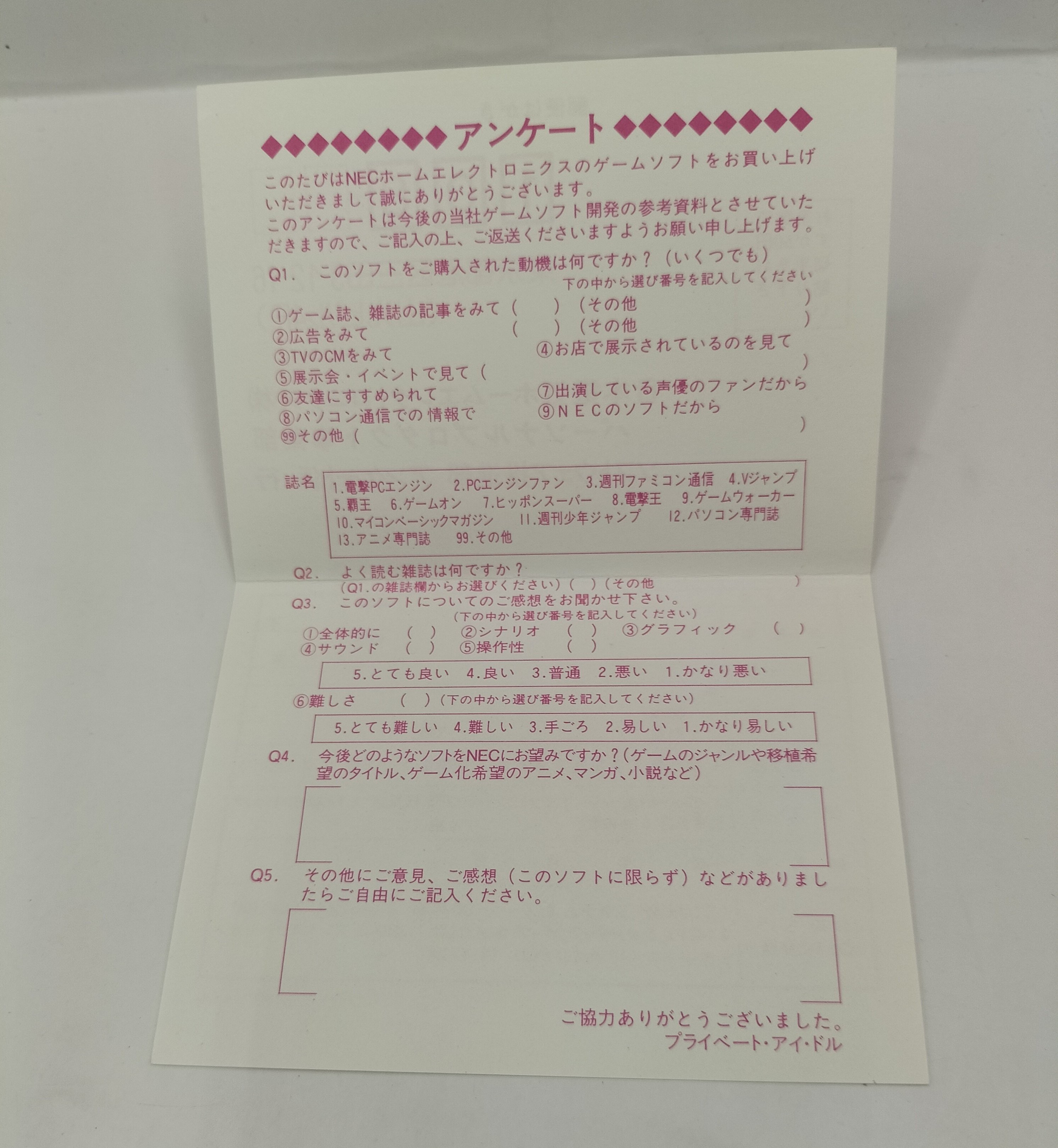 プライベート・アイ・ドル HECD5019 日本電気ホームエレクトロニクス株式会社 PCエンジンソフト 日本電気ホームエレクトロニクス株式会社HECD5019プライベート・アイ・ドル