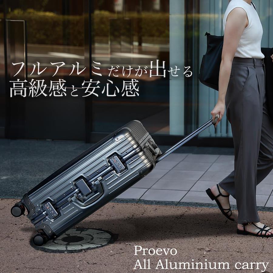 ◆サイズ:Lサイズ ◆対応サイズ:受託手荷物対応サイズ ◆外寸:72×50×27cm ◆総外寸:78×53×27cm ◆容量:約92? ◆重量:約5.7kg ◆対応泊数:1週間以上対応 アルミマグネシウム合金製の頑丈なボディで大切な荷物を守ります。ジェラルミンケースのような「本物」の高級感を持ったアルミマグネシウム合金製スーツケースです。ボディ表面には型押しのカーボンパターンを施した唯一無二のデザインとなっています。 スーツケースの走行に必要なキャスターには4輪全てにキャスターストッパーを搭載。電車内などスーツケースが自走してしまう環境でもキャスターを固定することでスーツケースの自走を防ぎます。 内装設計は固定バンドとパーテーションの二重構造で荒い取り扱いをされた場合でも荷崩れを防止します。メッシュパーテーションを採用しているためパーテーションポケットに収納した小物は何がどこに入っているか一目でわかるようになっています。 スーツケースのセキュリティにはダイヤル式TSAロックを採用。1000通りのパターンがある3桁の数字でロックをかけるダイヤル式TSAロックは高いセキュリティ性能を誇ります。また旅先で鍵を持ち歩く必要もないため紛失のリスクがなく旅行を快適に過ごしていただけます。上下のTSAロックは各々が独立しているため番号を分けて設定すればより高いセキュリティ性能を発揮します。