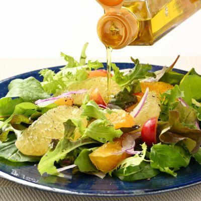 まずはサラダにひとまわしかけて、その香りごとお召し上がりください。きっと、オリーブオイルのイメージが変わるはずです。