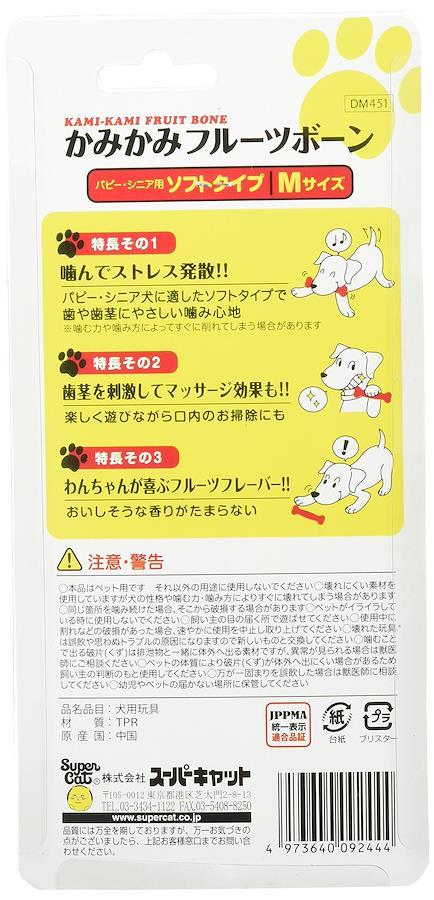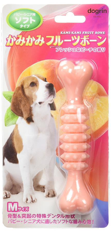 噛みながらデンタル効果のある玩具です。ストレス発散、アゴの強化にも最適です。幼犬、シニアのワンちゃんにやさしいソフトタイプです。甘いピーチフレーバー。