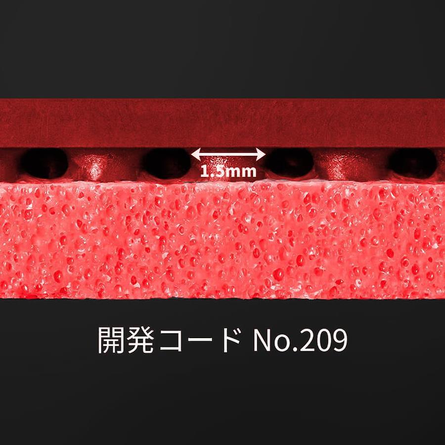 "開発コードNo.209"のツブ形状が、回転量の多いドライブやカット、台上技術やカウンターのしやすさをもたらします。