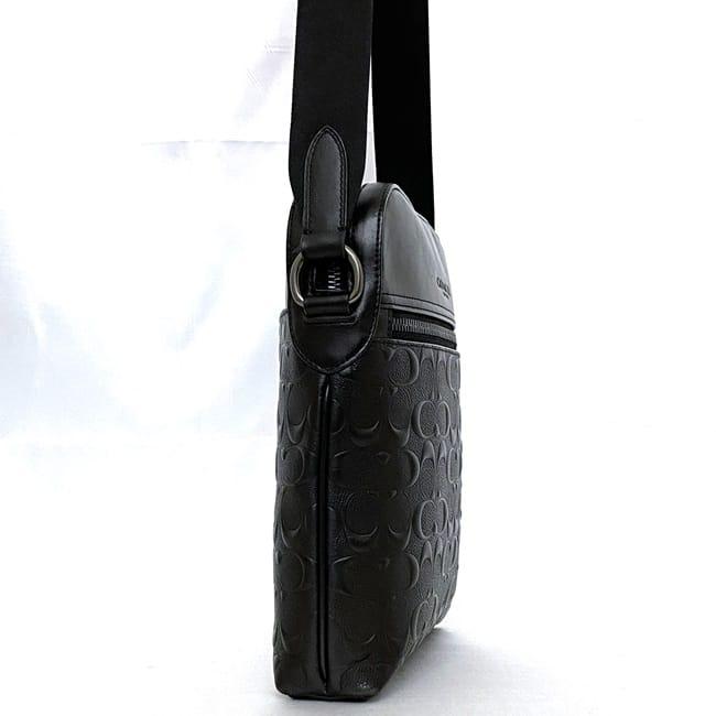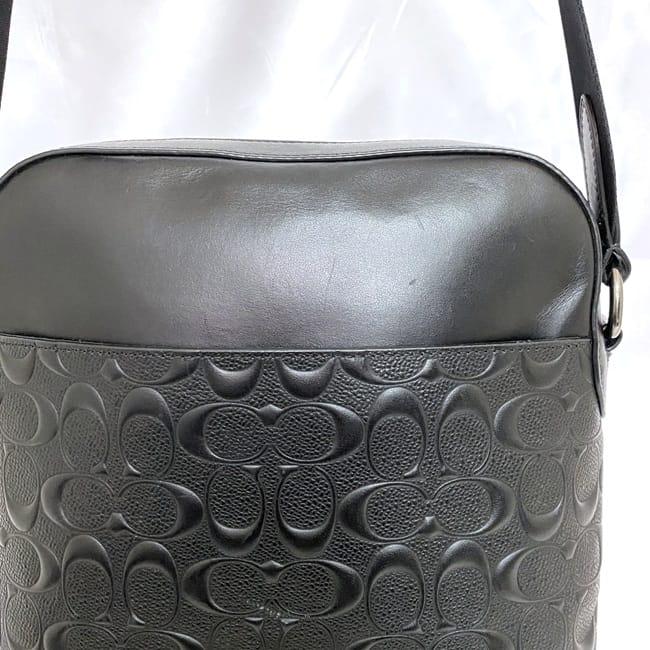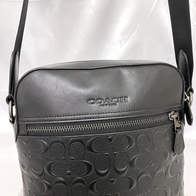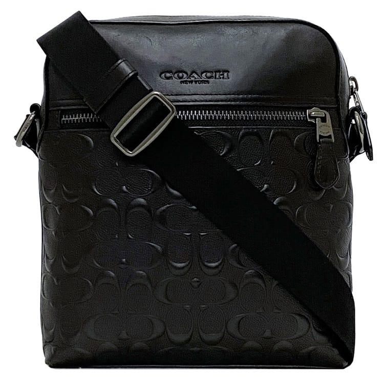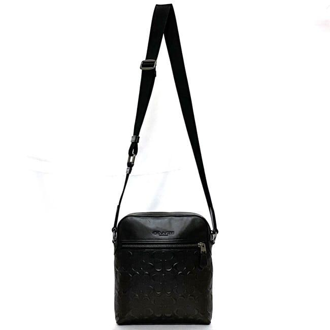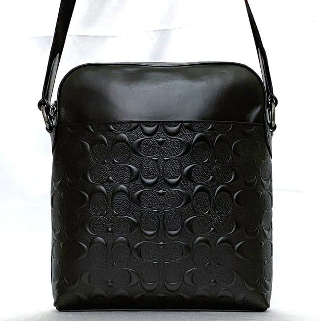 コーチ ショルダーバッグ ec-21917 ブラック シグネチャー F73338 美品 PVC レザー 中古 COACH シンプル クロスボディ エンボスロゴ ファスナー 定番 人気 レディース 黒 革 お洒落 通勤 通学 仕事 ビジネス 肩掛け バッグ 鞄 高級感 ブランド 本物 鑑定済み