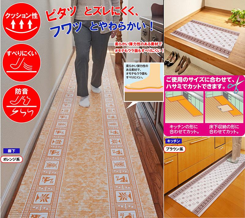 ★足裏・足腰に優しいすべりにくいクッションマットピタッとズレにくく、フワッと柔らかい!*柔らかい弾力性のある素材で表も裏も滑りにくく、防音対策・転倒の際のクッションにもなります。*床下収納やキッチンの形に合わせてご使用のサイズにハサミでカット出来ます。*廊下や玄関のぼり、キッチンやダイニングなど色んな場所でお使い頂けます。