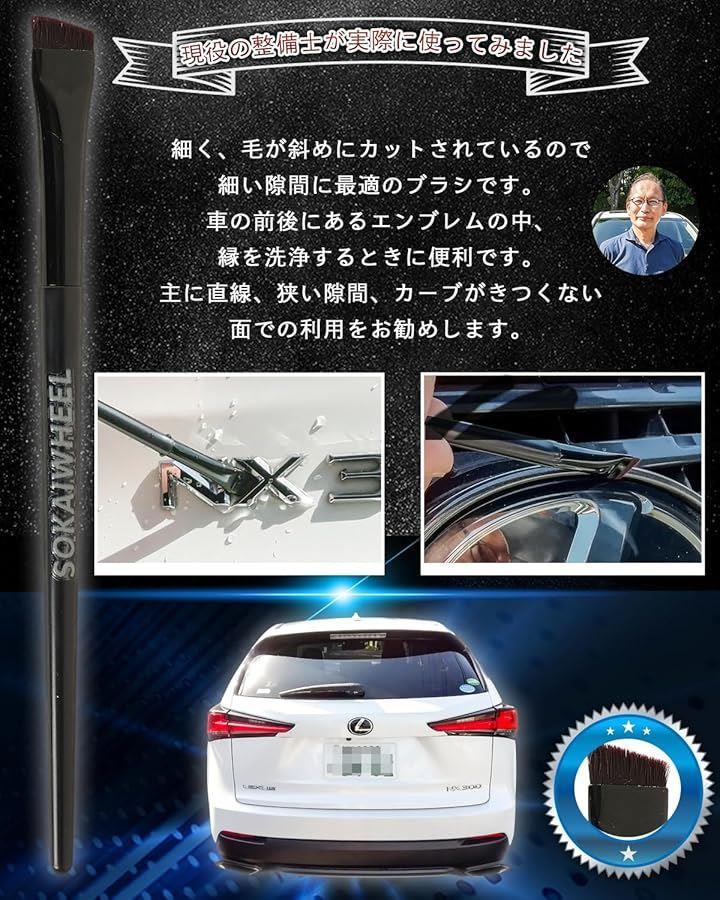大事なお車、バイクの通常の清掃用具では取れない隙間、細部を清掃するためのブラシです。