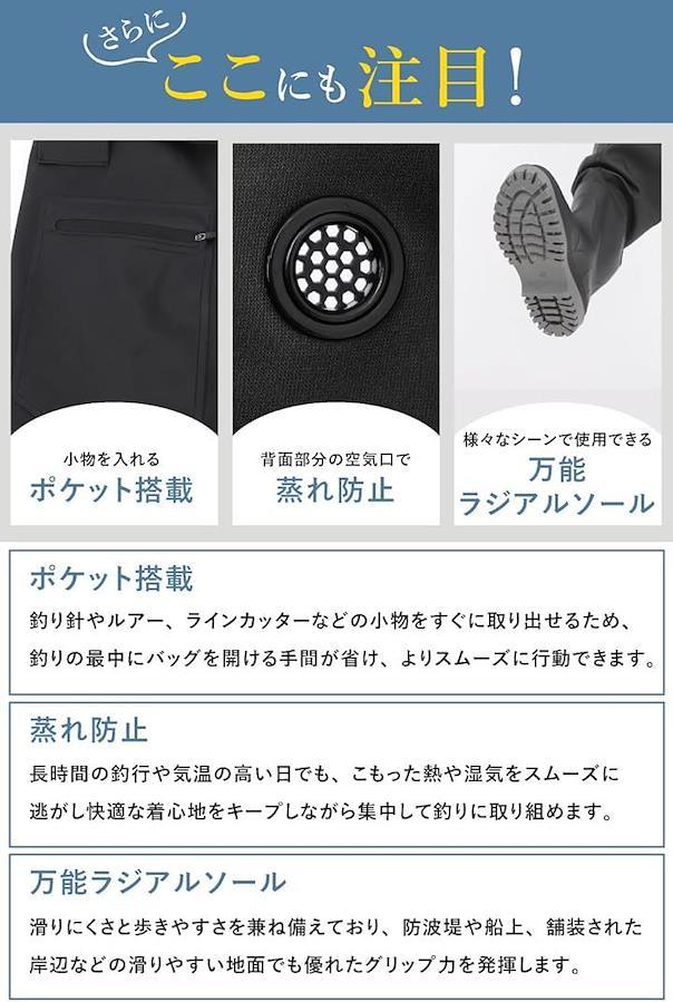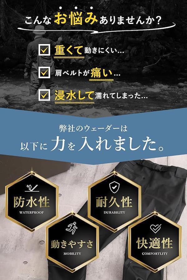 シンプルで飽きの来ないデザイン。防水性と必須機能がしっかり備わった簡単脱着仕様。あらゆる場面で使えるウェーダーです。特に腰部分のベルトでしっかりとずり落ちしないよう固定、ブーツも短めで軽量化と動きやすさを実現しました。