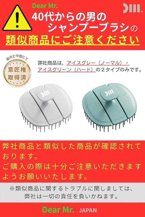 「商品詳細」*ブランド名:Dear Mr. *カラー:アイスグレー(ノーマルタイプ)、アイスグリーン(ハードタイプ) *素材:TPEE「熱可塑性エラストマー」(抗菌Ag+配合)*サイズ:84mmx88.5mmx56mm *用途:シャンプーブラシ、頭皮ブラシ、スカルプブラシ
