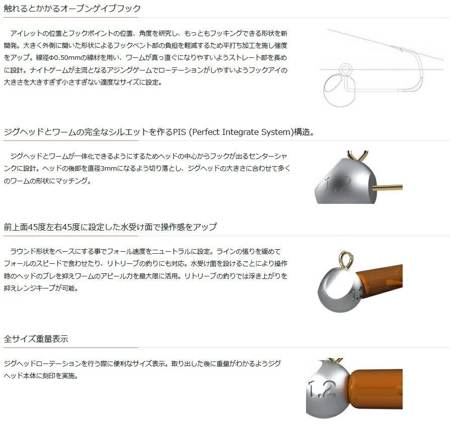 このジグヘッドは癖がないラウンド型のヘッド形状を採用し、