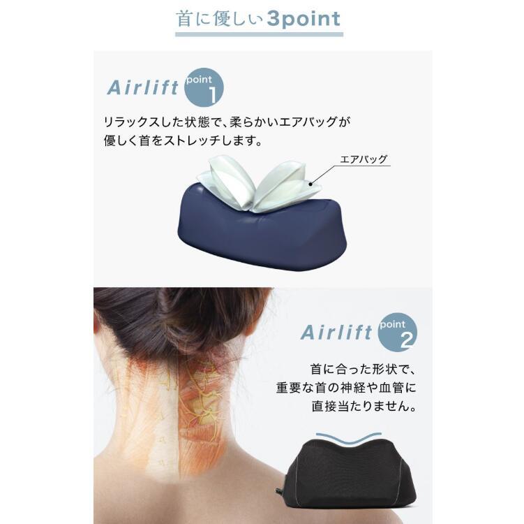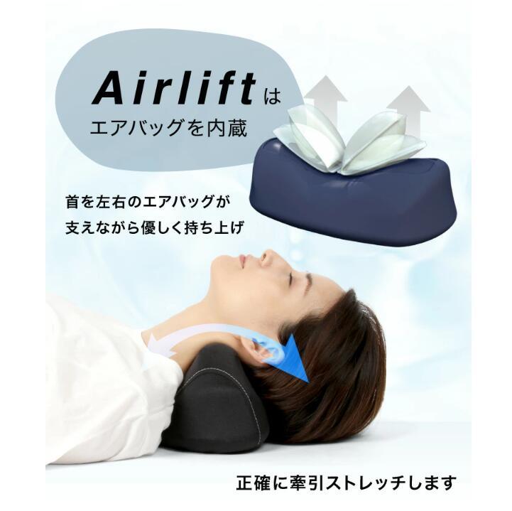 ネックストレッチャー エアリフトの上に首をのせるだけで、ゆったりと自動で首をストレッチしてくれます。首の自然なカーブにあうように設計されているため、違和感なく力を抜いた状態でご使用いただけます。