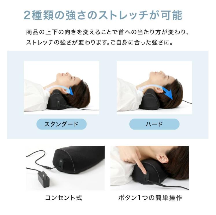 ネックストレッチャー エアリフトの上に首をのせるだけで、ゆったりと自動で首をストレッチしてくれます。首の自然なカーブにあうように設計されているため、違和感なく力を抜いた状態でご使用いただけます。