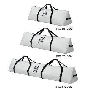 大型魚が入る保冷フィッシュキャリー。汚れに強く丈夫な防水ターポリン生地の間に断熱クッションが入った3層構造生地。氷と魚をそのままいれても臭いが移りにくく内部を保冷してくれます。鰤(ブリ)などの大型青物に適した幅120cmの鰤バッグ。鮪(マグロ)も入る150cmと200cmの鮪バッグの合計3サイズをラインナップ。サイドに把手がついており積み下ろしに便利。200は肩かけできるベルトが2箇所あり2人での運搬が可能。上部の止水ファスナーはジッパータブ付属。