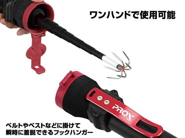 また、フックハンガーをベルトやベストに掛ける事で瞬時に着脱ができ、更に少ない動作で素早いイカの取り込みが可能。
