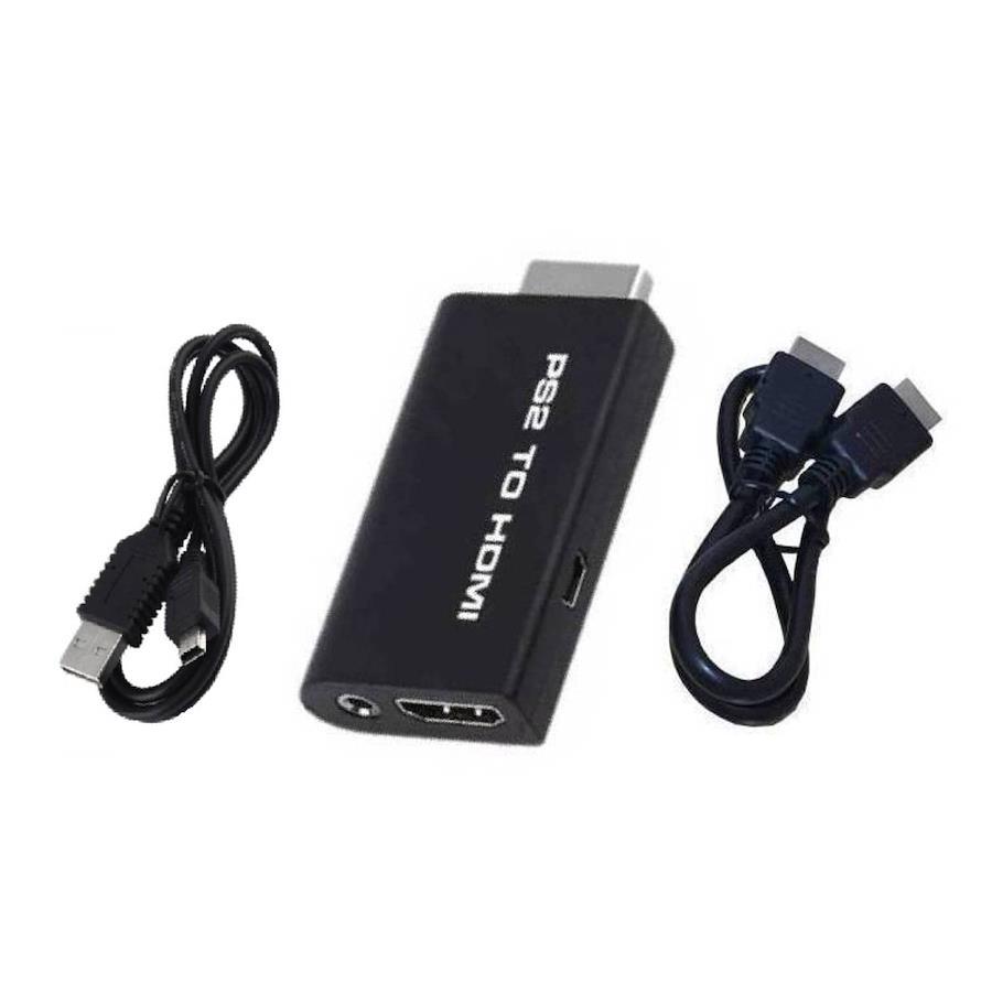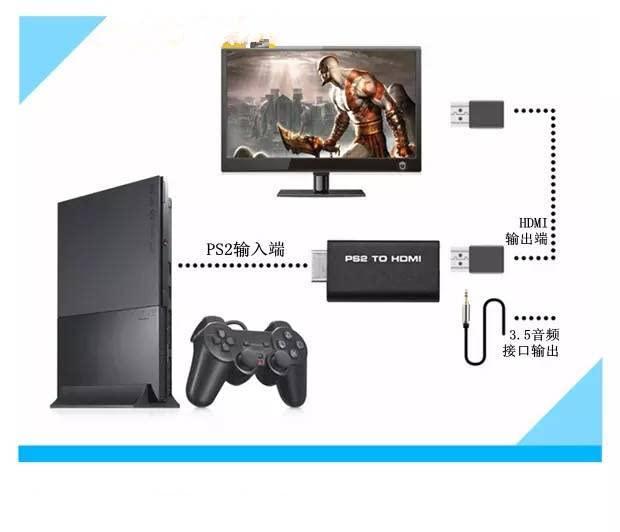 PS2 to HDMI Converter Adapter, Play PS2 with HDMI Adapter converts AV output from PS2 to HDMI output Convert the resolution signal such as 480I, 576I, 480P to HDMI signal without loss If there is no sufficient power supply, operation will be unstable. Please connect the included USB cable to the USB port on the PS2 unit to provide power. System Settings → Component Video Output → Change RGB to Y Cb/Pb Cr/Pr HDMI cable with 0.5m (Supports HDMI standard 1.4: 1080p, 3D support) PS1 games are not supported. Connect the PS2 unit horizontally. For thin PS2, the USB charging cord will interfere with the power cord, but this is not a problem. (Not compatible with model number SCPH-90000 only). )