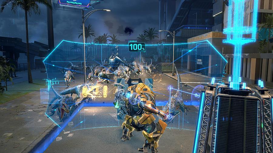 最凶を最強でぶっ潰せ!西暦2043年。時空のゆがみ「ボルテックス」から恐竜が出現する「恐竜災害」が世界各地で発生するようになって3年。ビキトア島に不時着したエグゾファイター「エース」は次世代AIリヴァイアサンによって無限に繰り返されるウォーゲームへと強制的に参加させられてしまう。エグゾスーツとリグを組み合わせ、自分だけのカスタマイズで出撃!仲間たちと協力して、迫りくるディノサバイバルを生き残れ!