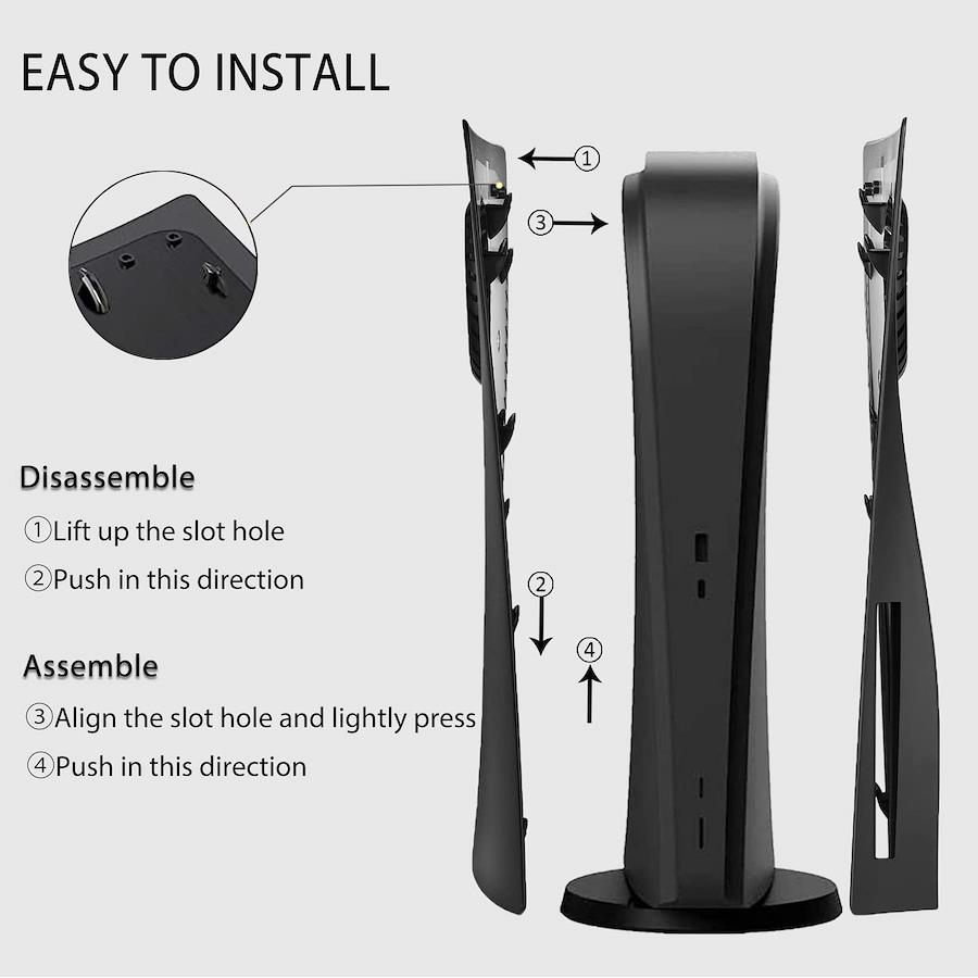 簡単な取り付け:巧妙なバーブ設計により、軽く2回押すだけで取り付けが完了します。ロゴの方向で滑らせ、元のカバーアップをわずかに持ち上げて下さい。PS5コンソールシェルの交換にかかる時間は1分です。
