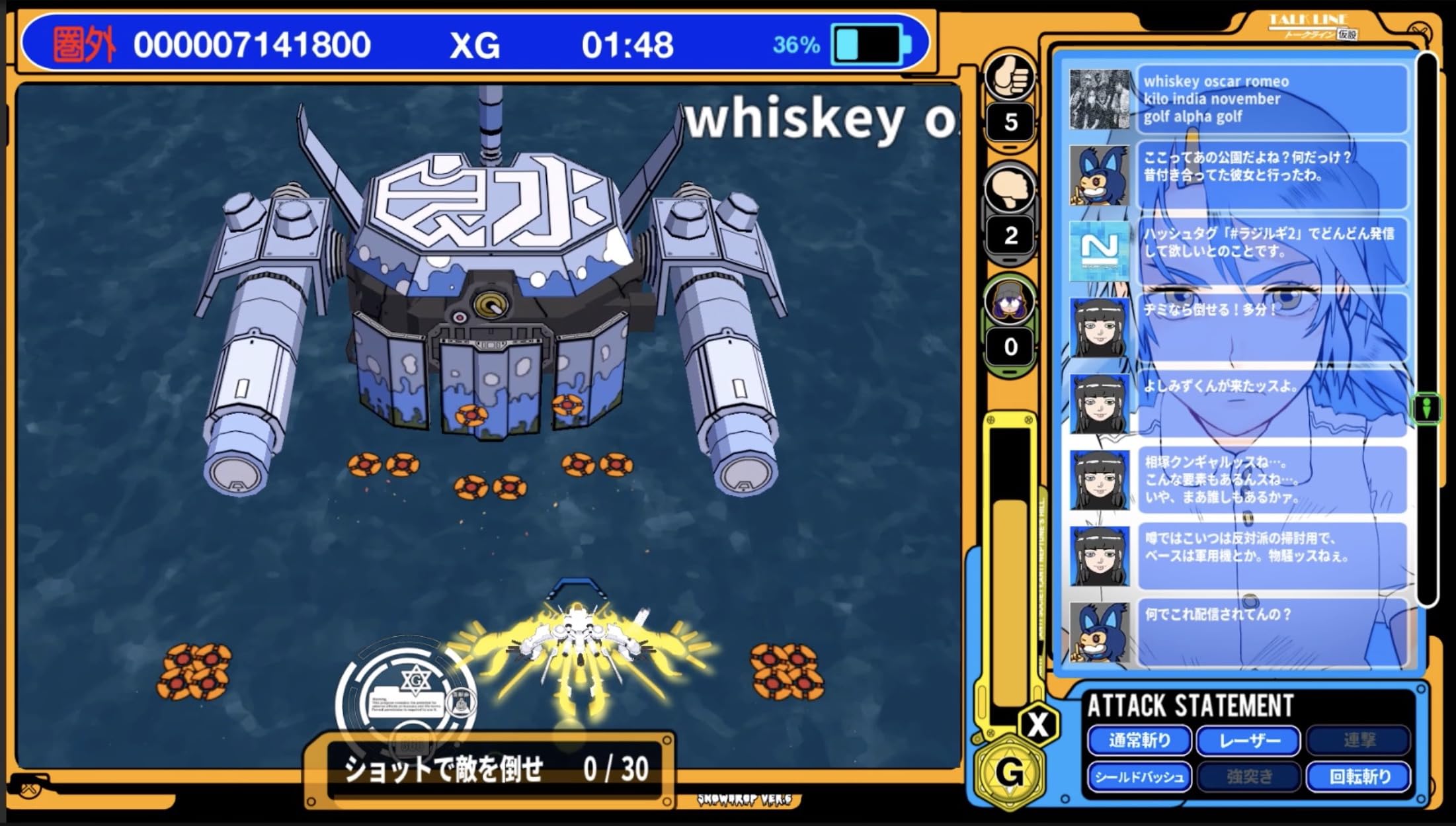 ■ラジルギ2とは「ラジルギ2」は、縦スクロールのシューティングゲームで、2種類の自機を操作できます。ダブルスティックで操作する「村雨(むらさめ)」は、敵やアイテムを獲得し自機が進化します。レーザーや回転斬りなどの強力な攻撃を繰り出せるようになる爽快感のある機体です。どこか懐かしい「固地老(こじろう)」は、ショットとボムで敵機を倒していく、往年のシューターも満足する操作感です。それぞれ違う特性を持った自機を操り、全5ステージのクリアを目指します。また、「ラジルギ2」にはアーケードゲームや家庭用ゲーム機で人気を博した当時の「ラジルギ」を移植収録しています。トゥーンでポップな電波系シューティングは今も色褪せず、当時の面白さをそのままにプレイしていただけます。