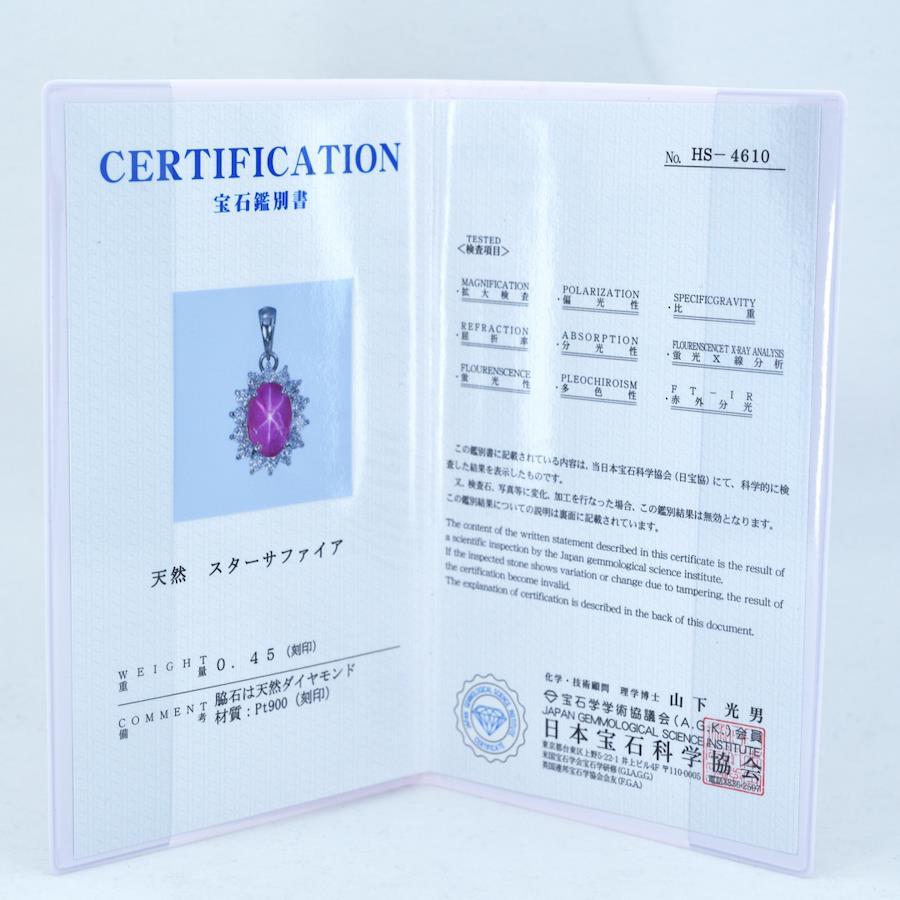 【アイテム名】PT900 天然スターサファイヤ ダイヤモンドペンダントトップ 鑑定書付き