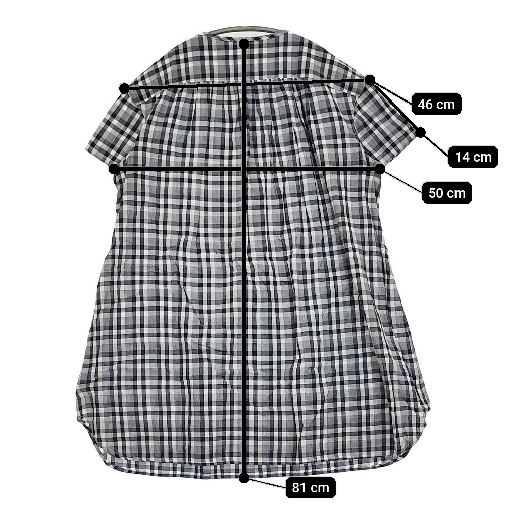 | 実寸サイズ | 肩幅:約46cm 着丈:約81cm 身幅:約50cm 袖丈:約14cm ※採寸画像がある商品はハンガーに吊るした状態での計測のため、平置きでの採寸とは差が生じる場合がございます。平置きでの実寸サイズをご希望の場合は、ご購入前に必ずご質問ください。 ※記載以外のサイズが合わないことを理由とした返品はできませんので、 記載部分以外で実寸サイズの気になる箇所があれば必ず購入前にご質問ください。 |