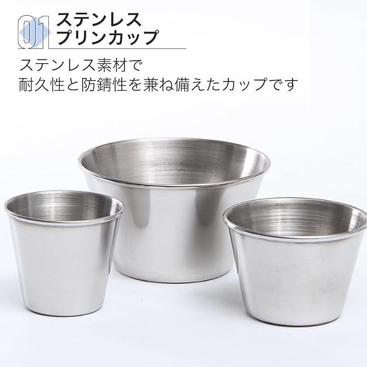 「ステンレスプリンカップ」 ステンレス素材で、耐久性と防錆性を兼ね備えたカップです。