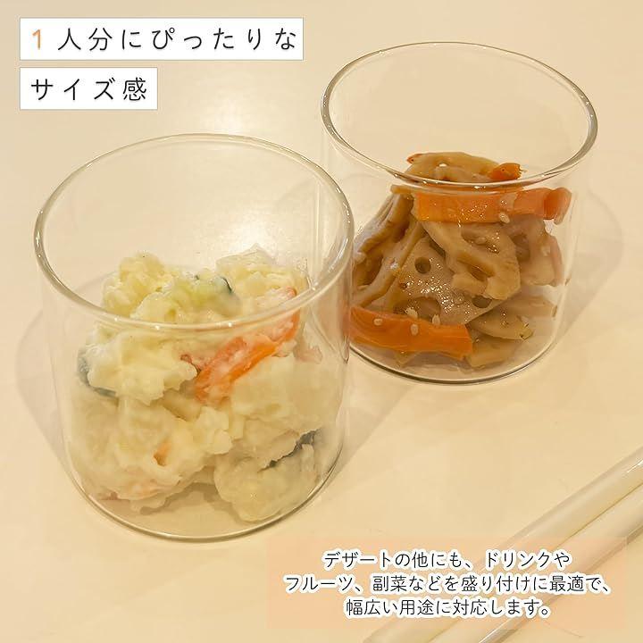 「商品詳細」 材質:高ホウケイ酸ガラス サイズ3種(直径6.5x6cmx、直径8x高さ5cm、直径8x高さ8cm) スタイル2種(6個セット、12個セット)