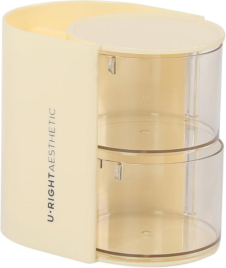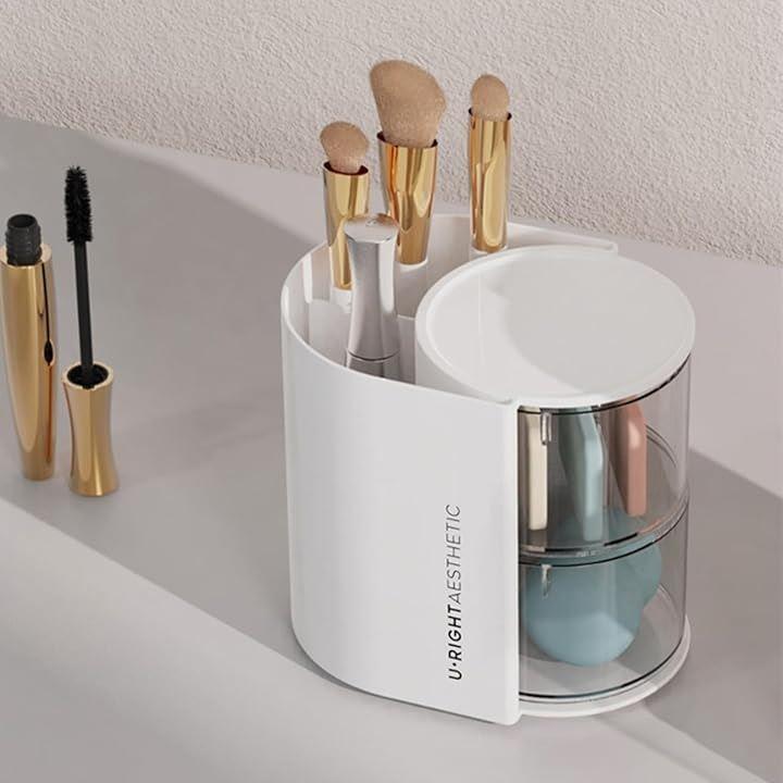 上部にはメイクブラシやペンなどを立てて収納できるスペースがあり、デスクやドレッサーの整理に最適です。
