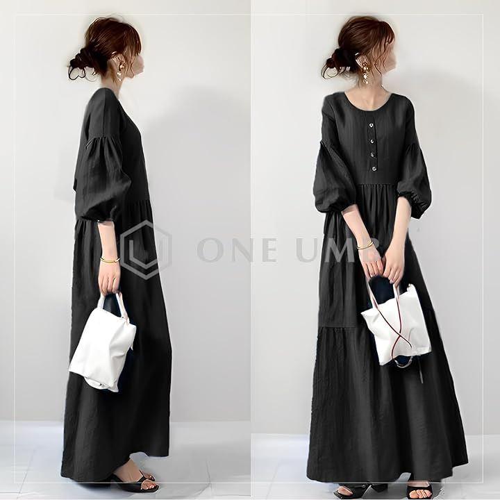 マキシ丈がリゾートシーンにもマッチします。 肌の露出に抵抗のある方でも取り入れやすい七分袖。