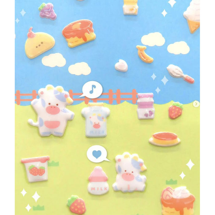 いろいろな乳製品が、ぷっくりとした立体シールになりました。